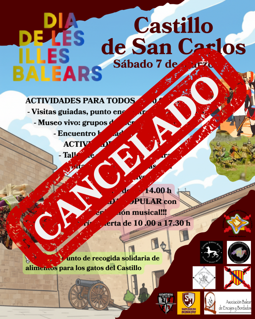 Dia de les Illes Balears 2026, lamentamos comunicar que nos vemos obligados a CANCELAR todas las actividades previstas para el sábado 7, debido a la previsión meteorológica. Se mantiene la ENTRADA GRATUITA para esa jornada en el horario habitual de 10 a 14 horas.